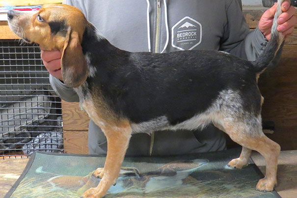 Sundae is very much like her sire, BOLT ACTION. This was his last breeding. She is excellent on the line, plenty of hunt, and a very very pleasant character. We look forward to seeing her pups Spring 2023.