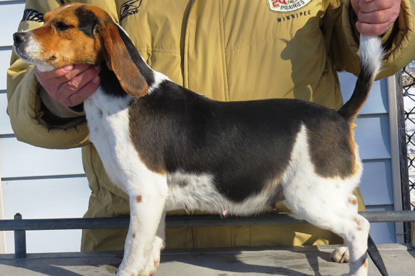 Her name means “perpetual motion”. As a pup, and as an adult, she is always busy. Except when it’s 40 below…. She is a very busy dog in the woods, always finding the rabbit, and moving it very quick and very correctly. She comes back to the check very well. She is exceptional, and we are hesitant to allow her to leave home… Her littermate brother, Branko’s Matrix is expected to finish for his F.C. in 2017.
