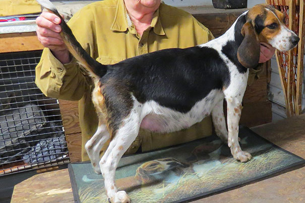 Tasha is from a very proven cross, and runs like that. Hard hunting, big voice, lots of foot. She will stay in the kennel. Her Mother QUEEN LATIFAH was sold recently to a repeat client in KY. We wish him all the best with her, a very good investment for the future of his kennel.