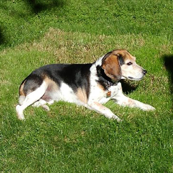A very happy Branko’s beagle at age 8! His owner sent this recently, spring 2015.