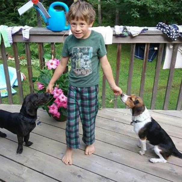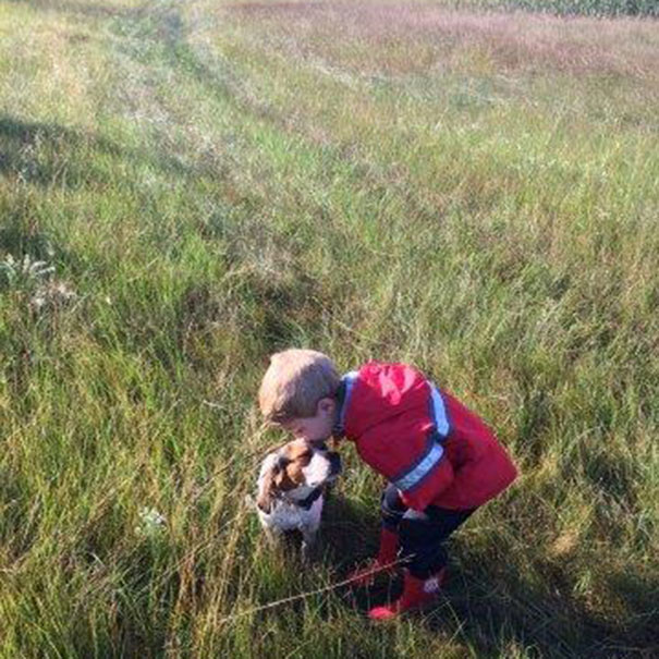 Little Blake with a dog, who had never seen a small child till then. Good dog!!! Shows why dogs and kids belong together.
