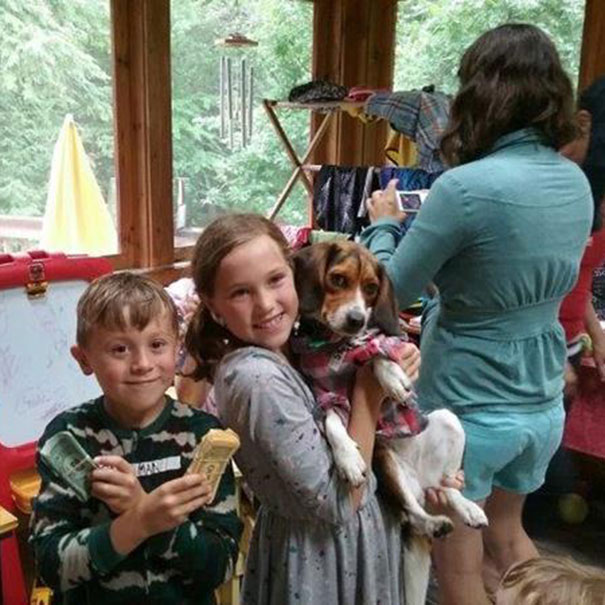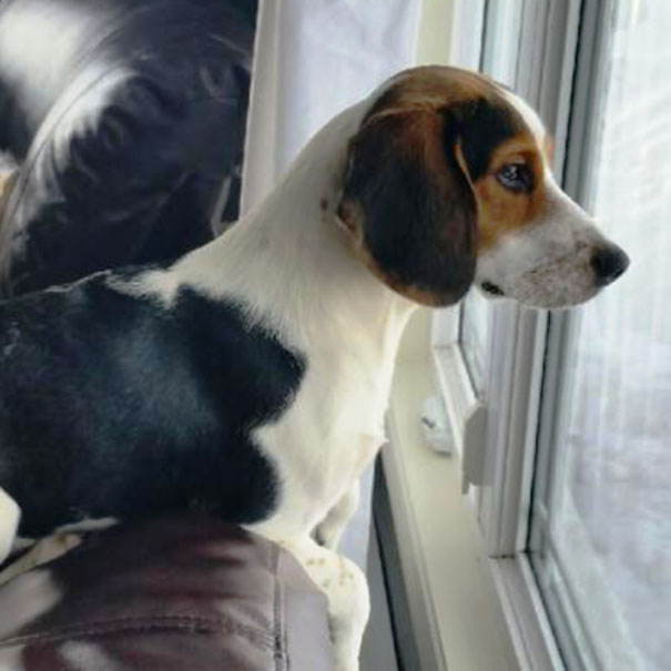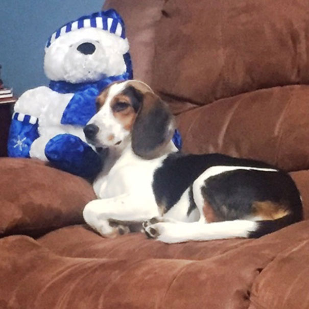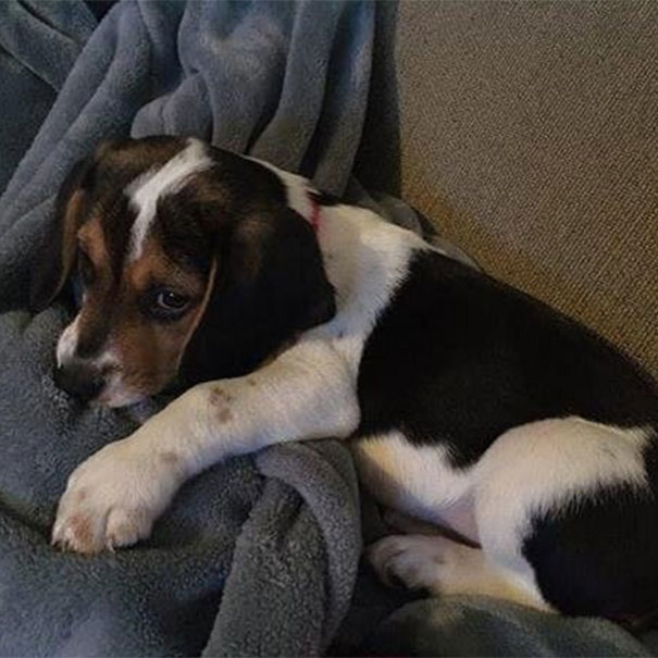 This beagle is going to be a much loved pet in Calgary, Alberta.