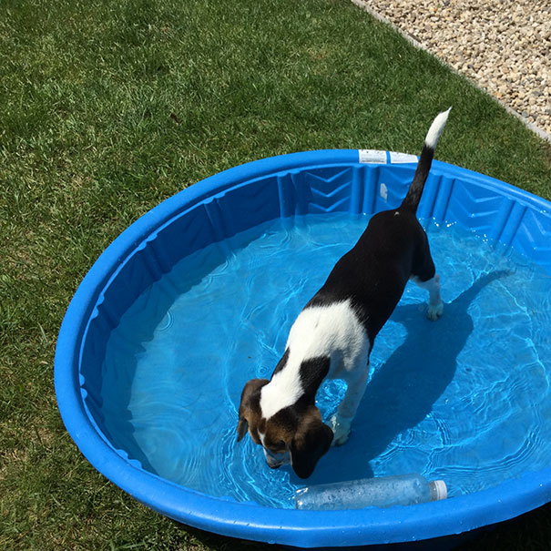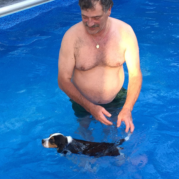 Chico, a Doc Watson son, enjoying his time in the pool with his new owner Ms. H.R.