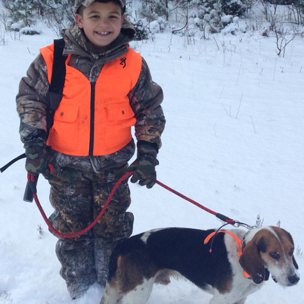 A boy and his dog Gauge. He is by Ft.Ch. Branko's Lumbers Last Dance and Branko's SUV. "Wanted to tell you all how pleased we are with Gauge. He's doing really well killed several with him this year. He's super smart."
