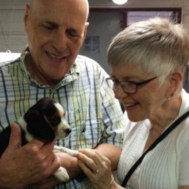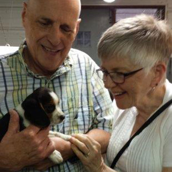 Puppy ‘Molly”, with her new owners, Barb and Ted. The owners had a pup 15 years ago, this is their new own. We know she’ll be in a very good home!