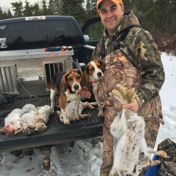 Went out rabbit hunting at the new "secret spot" in Rochester on Friday. I think we hit the mother load. This is the same general area where we couldn't get one rabbit a few days ago. Go figure! We got our beagle, Niki, from you in May of last year. She is out of Branko's Casey and Brankos Wicked Witch 2. Niki is a rabbit hunting machine and wonderful family pet!