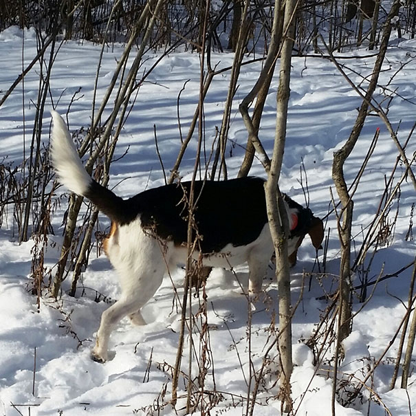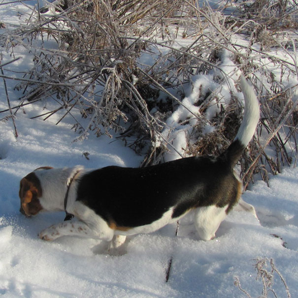 Just wanted to give you an update on Ace, my pup off of Dance x spotless. Ace is doing great!! He definitely likes being the leader of the pack. The thing that probably impresses me the most about him is that I have never seen a beagle bird dog a rabbit as I call it. We will be working through a section of brushy Christmas trees and he will wind one, root around a flush it out. I have never had or seen a beagle that would be able to pin point where a rabbit is bunkered down covered by brush and grass just by moving past the area. He jumped one 3 days ago in a field that had enough visibility he ran the rabbit down and nabbed it before it got out of site. Hope all is well for you guys up there! I will get some pictures for you soon of him. He has a beautiful head on him and I get a lot of compliments on how good looking of a dog he is. Thanks,J.C. PA.