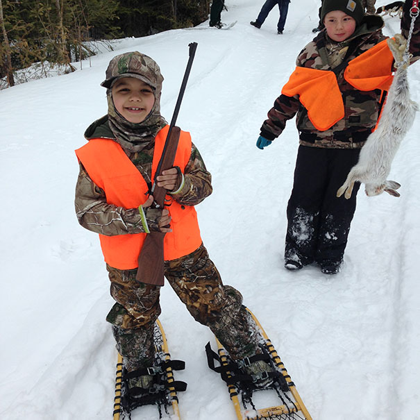 2 youngsters with their rabbit, shot over a Branko dog, winter 2014.